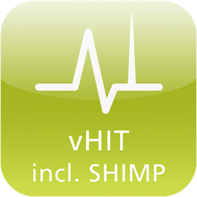 • vHIT que incluye SHIMP  Permite evaluar los seis canales semicirculares mediante el uso de tecnología vHIT validados frente a las bobinas esclerales. La incorporación de la prueba del paradigma de supresión del impulso cefálico (SHIMP, por sus siglas en inglés) puede proporcionar evidencia clínica de la función vestibular residual en casos severos de pérdida vestibular.