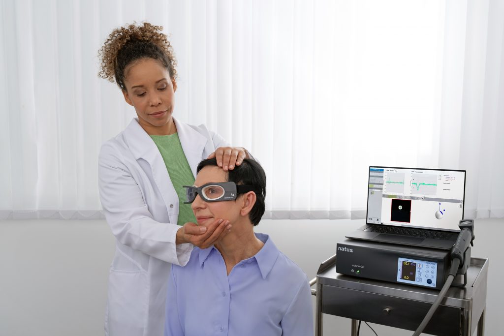 La prueba de impulsos cefálicos por vídeo (vHIT) detecta trastornos del reflejo vestíbulo-ocular e identifica qué oído está afectado en casos de pérdida vestibular periférica. Los doctores Halmagyi y Curthoys son los pioneros del sector que identificaron y describieron por primera vez la prueba del impulso cefálico en el artículo de 1988, «A Clinical Sign of Canal Paresis».